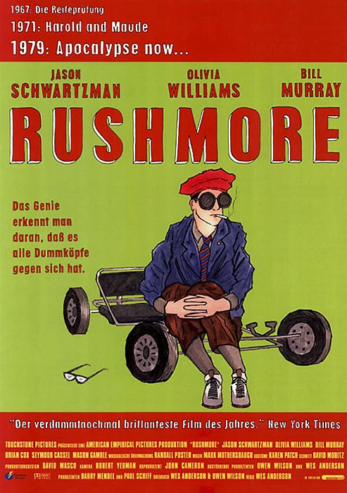 Rushmore ist eine US-Amerikanische Coming-of-Age-Komödie aus dem Jahr 1998. Der Film wurde von Wes Anderson inszeniert und in Zusammenarbeit mit Owen Wilson geschrieben. Als Produzenten fungierten Barry Mendel und Paul Schiff. In den Hauptrollen sind Jason Schwartzman, Olivia Williams, Bill Murray, Brian Cox, Seymour Cassel und Mason Gamble zu sehen. Der Film startete am 8. März 2001 in den deutschen Kinos.